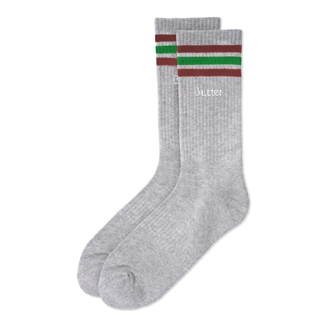 Introducing the Butter Goods Stripe Socks - the perfect addition to your wardrobe! These high-quality socks are designed for maximum comfort and style. Made with premium materials, they feature a classic stripe design that will elevate any outfit. Say goodbye to boring socks and hello to fashion-forward footwear.