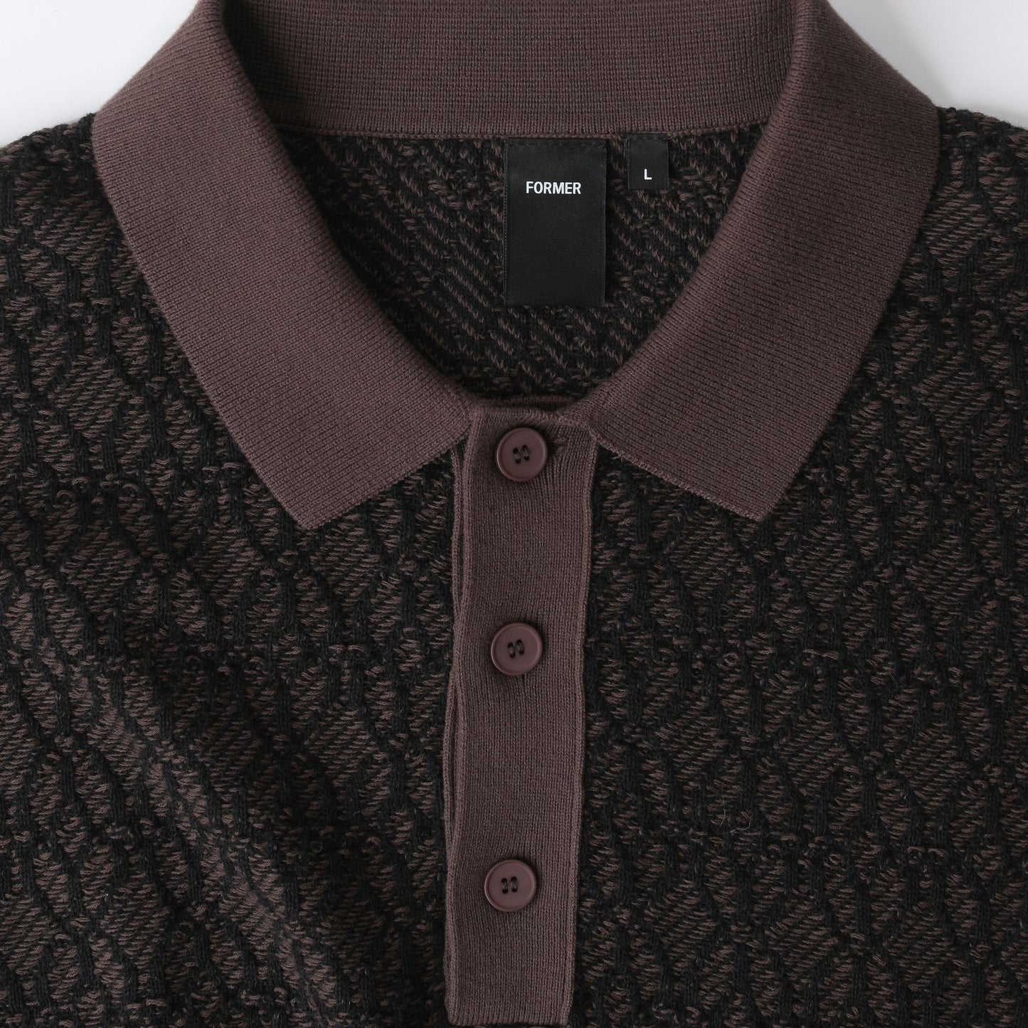 Introducing the Former Expansion Knit Polo in a rich shade of brown. Made with high-quality materials, this polo not only offers a timeless and sophisticated look, but also superior comfort and durability. Elevate your wardrobe with this perfect piece.