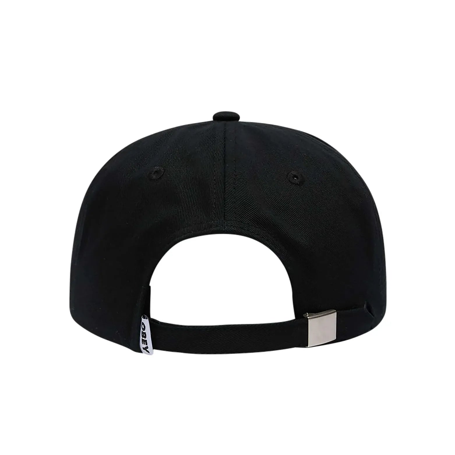 HIGH PROFILE 6 PANEL TWILL STRAPBACK- MESH TRAY STRUCTURE- STRAPBACK CLOSURE- EMBROIDERED OBEY ART