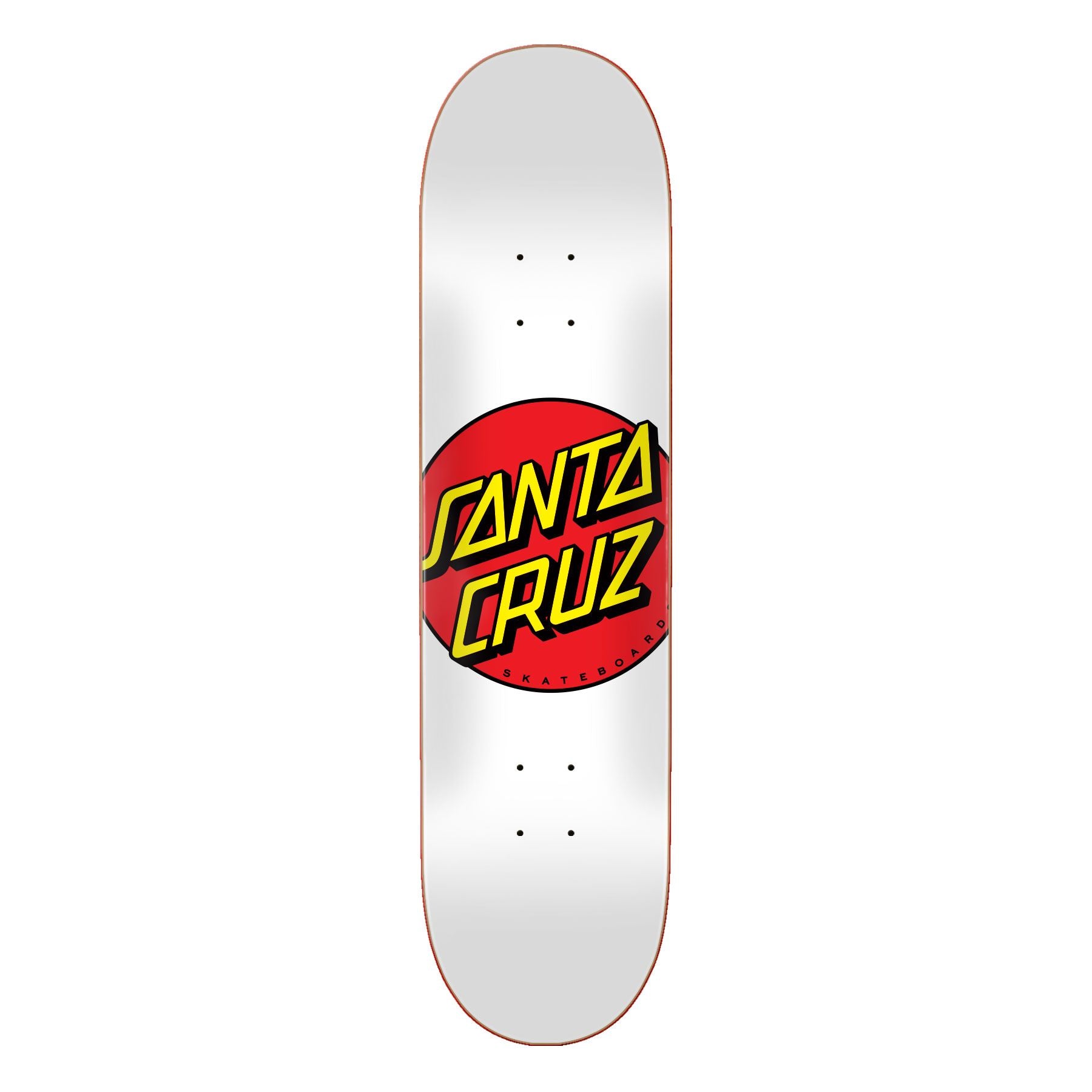 Santa Cruz Skateboards Classic Dot graphic deck on 7 ply North American Maple pressed individually using epoxy making a strong, responsive deck with long lasting pop and consistent concave and kick.