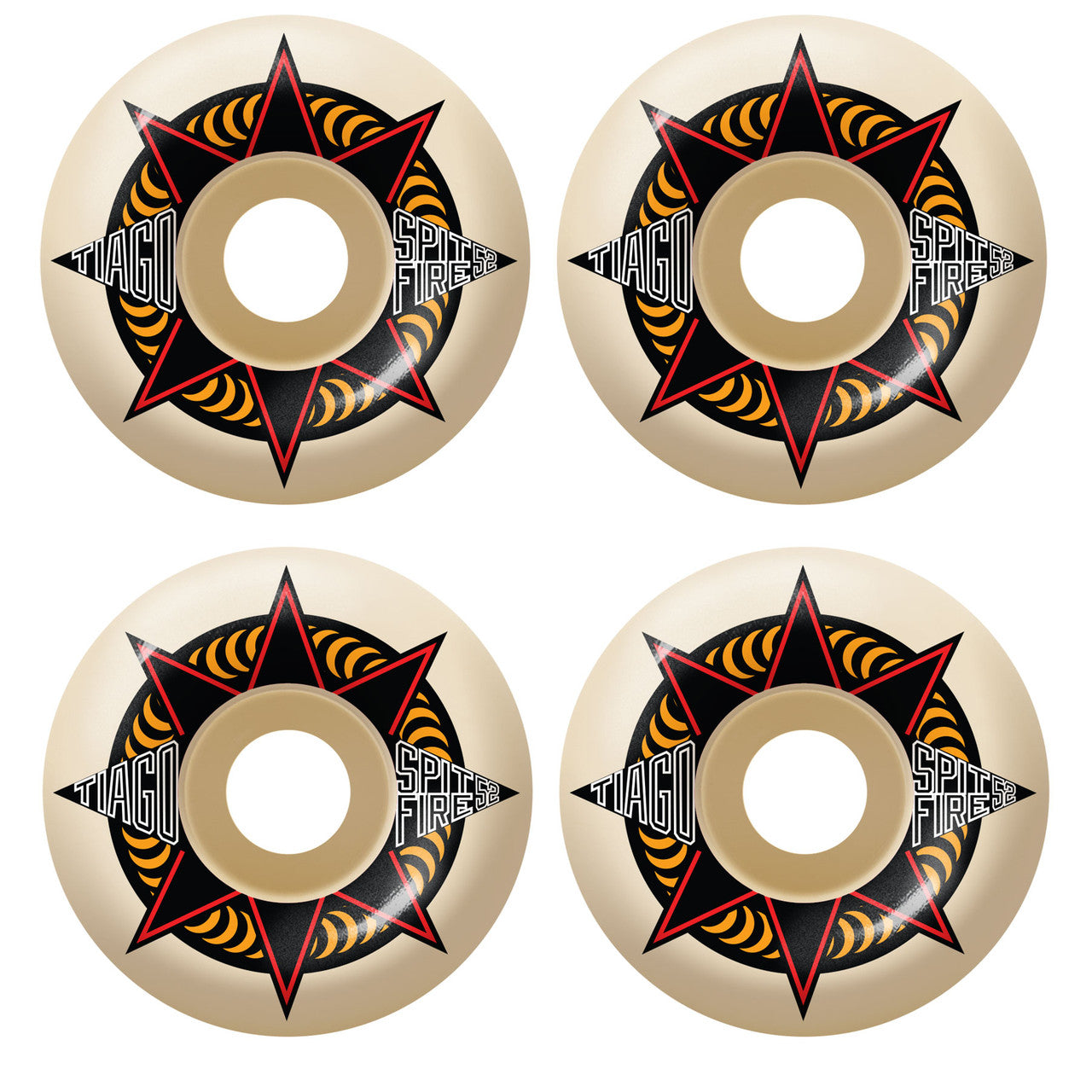 - One (1) set of 52mm Spitfire Wheels Tiago Lemos Formula Four Sure Shot Classic Natural Skateboard Wheels - 99a; includes four (4) wheels