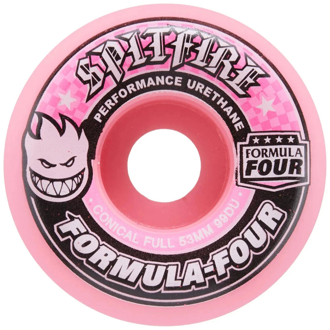 Formula Four Wheels retained more material, coned less and kept their original shapes and sizes longer than any other wheel. Formula Four Urethane is made using a 100% pure urethane compound. On the hills, in the streets and parks and in forced flat spot testing in our lab, Formula Four wheels out-performed and resisted flat spots longer with less wear than all other wheels. Formula Four's exclusive combination of High Rebound and Hard Duro produces a faster wheel everywhere. Higher rebound for faster speeds over rough and smooth surfaces. Hard Duro for a harder, faster ride that won't mush out over timeFormula Four's exclusive anti-stick slide gives a fast/consistent, smooth slide all the way through.Slide with confidence start to finish knowing your wheels won't skip or catch mid-slide.